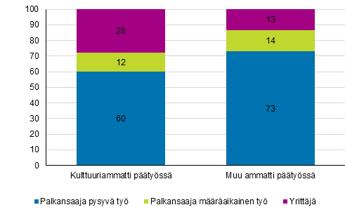 toimi 12 prosenttia kulttuuriammateissa toimivista ja loput 28